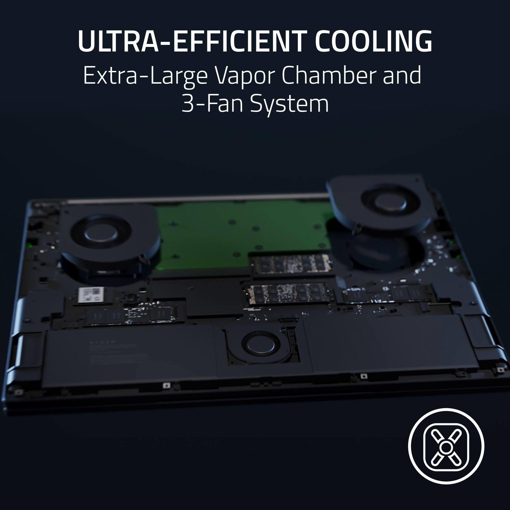 Yüksek performansı ve düşük sıcaklıkları korumak için Razer Blade 18, şimdiye kadar oluşturduğumuz en büyük buhar odası ile maksimum termal verimlilik için özel olarak ayarlanmış 3 fanlı bir sistemle donatılmıştır.